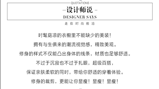 4.详情页使用的字体不超过3种,每一部分对应的字体要统一,字体要和页面整体分格相协调,可以中英文相结合